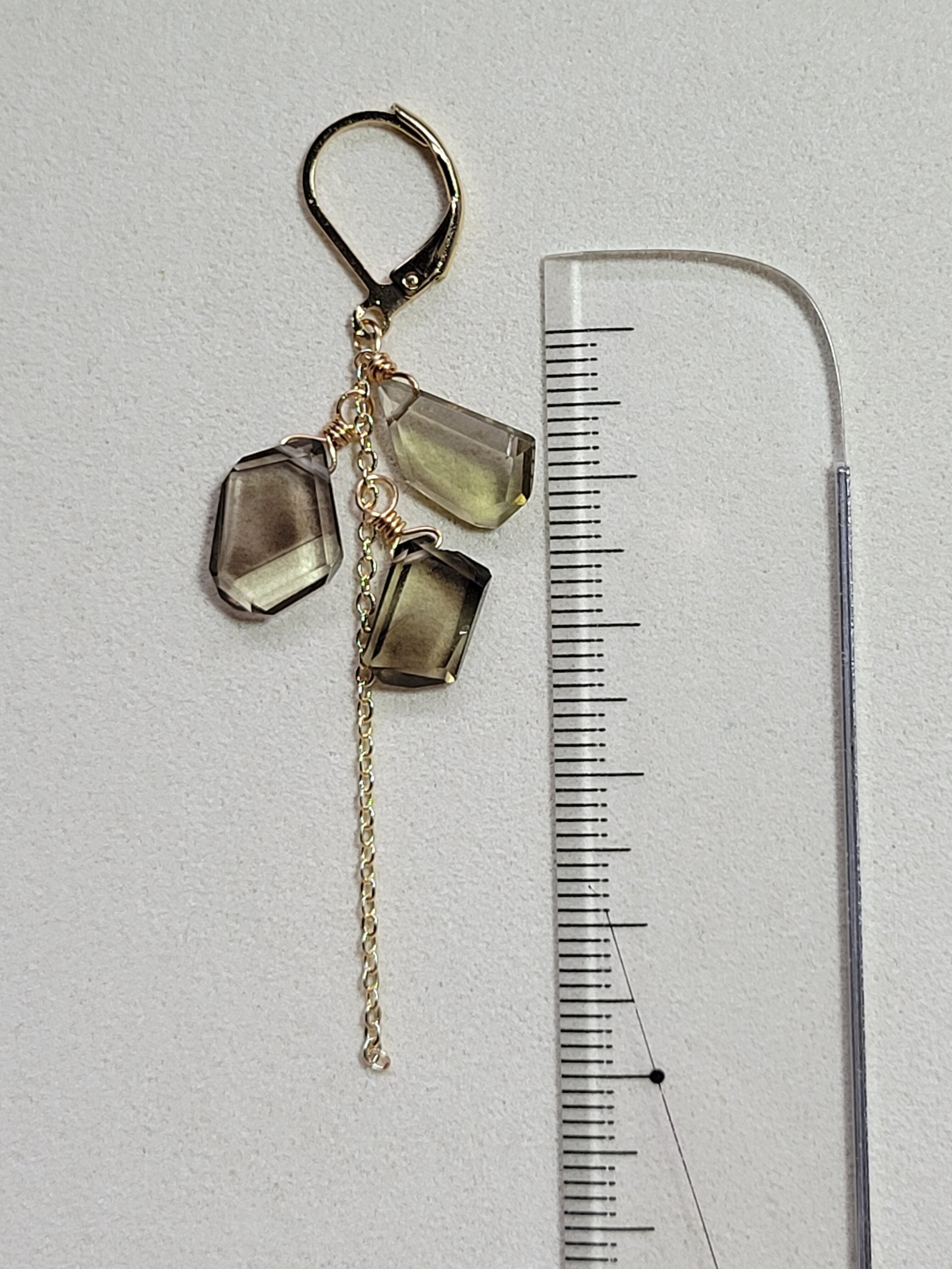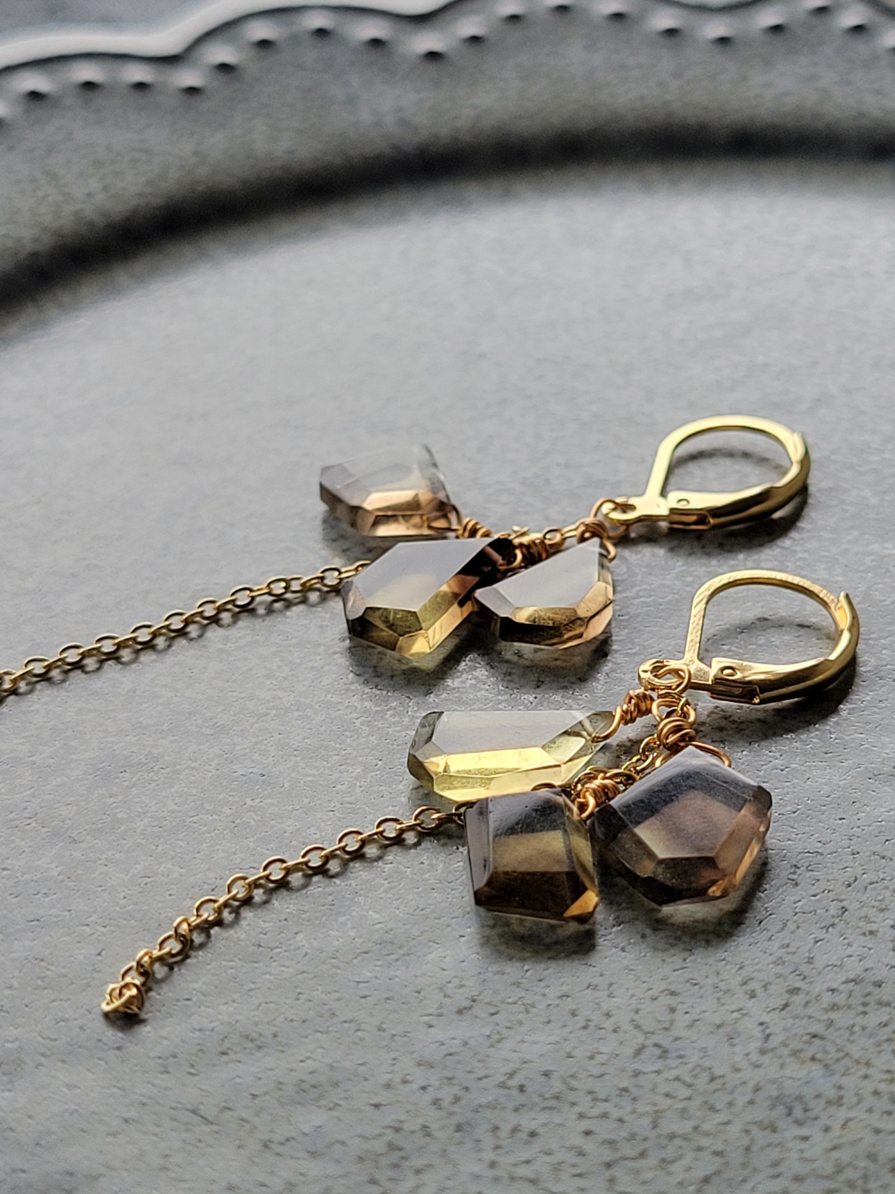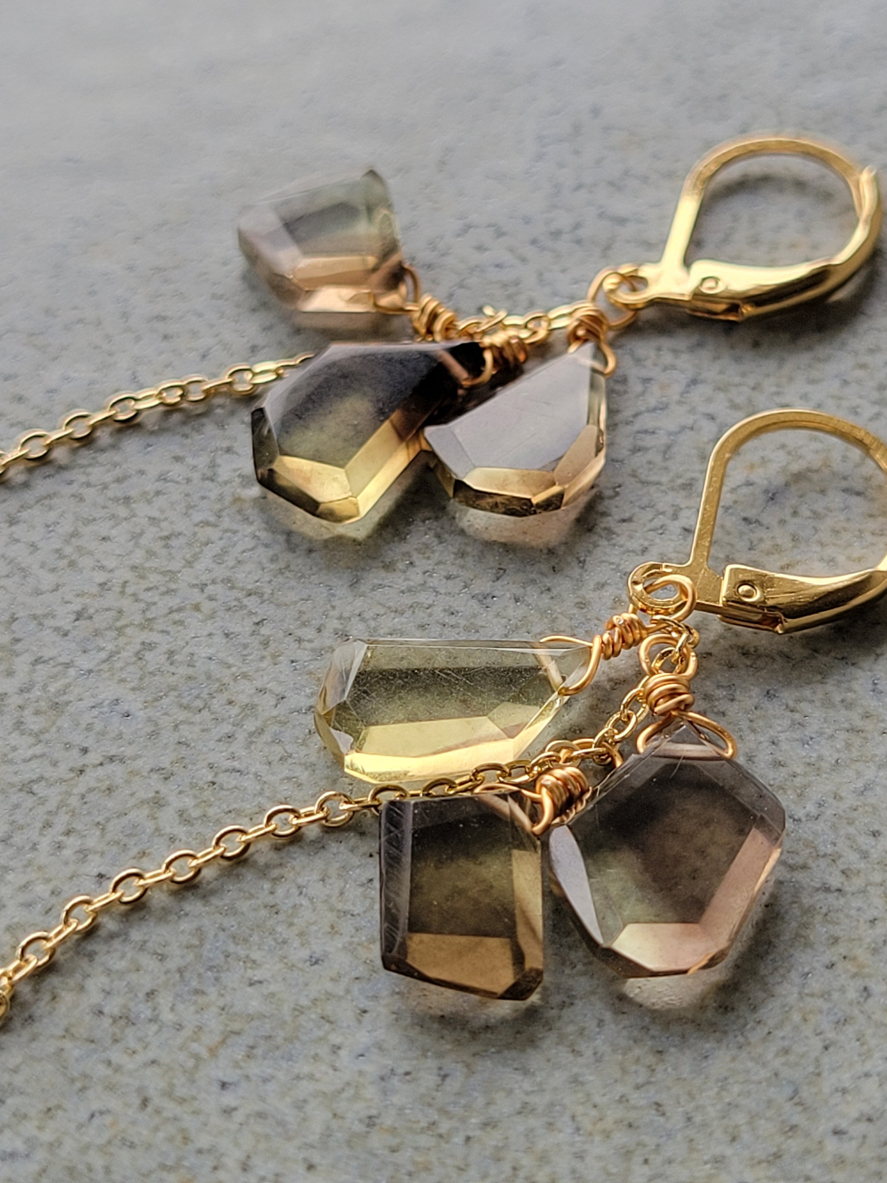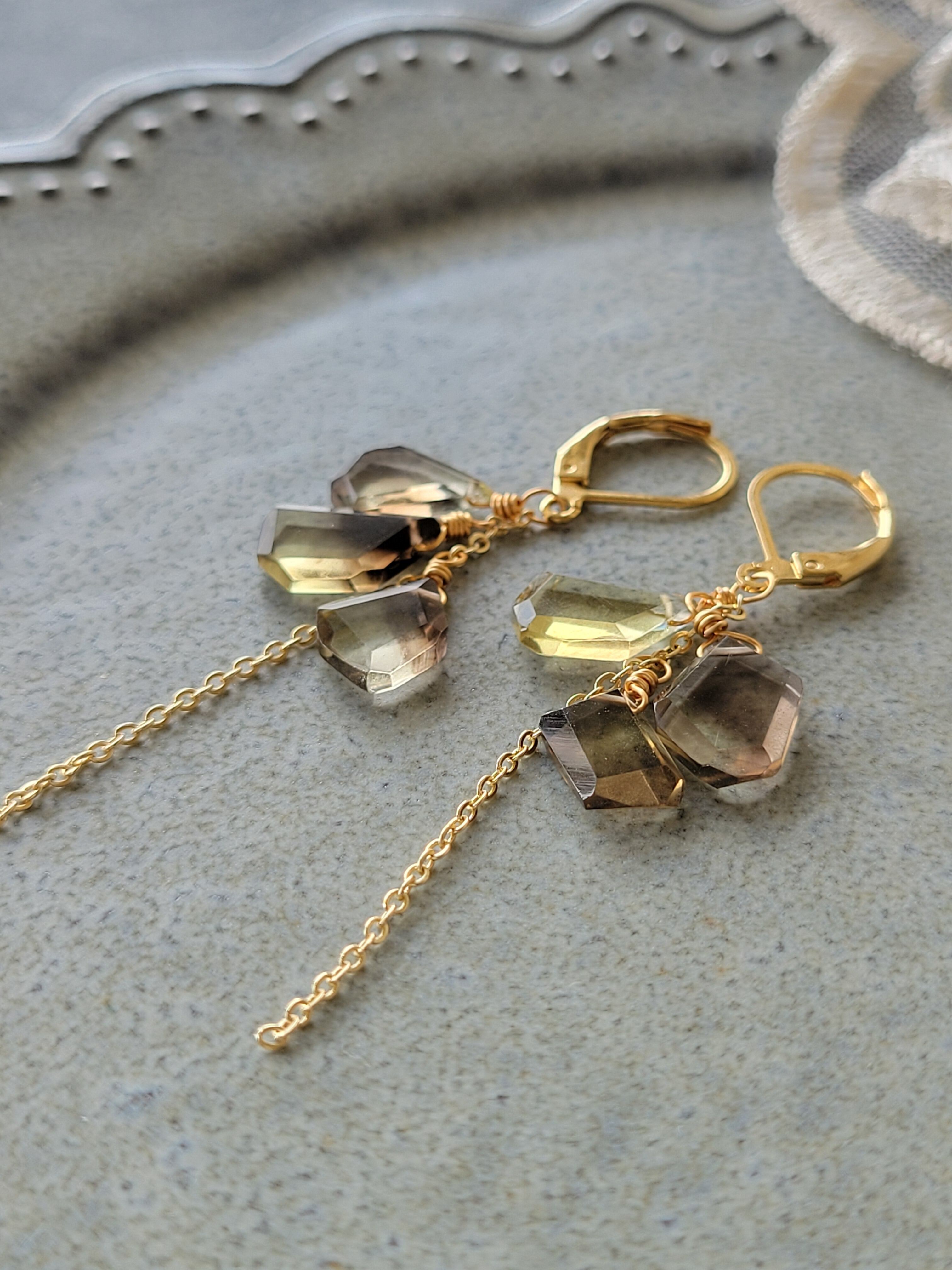 天然石 レモン×スモーキークォーツのラフスライスピアス