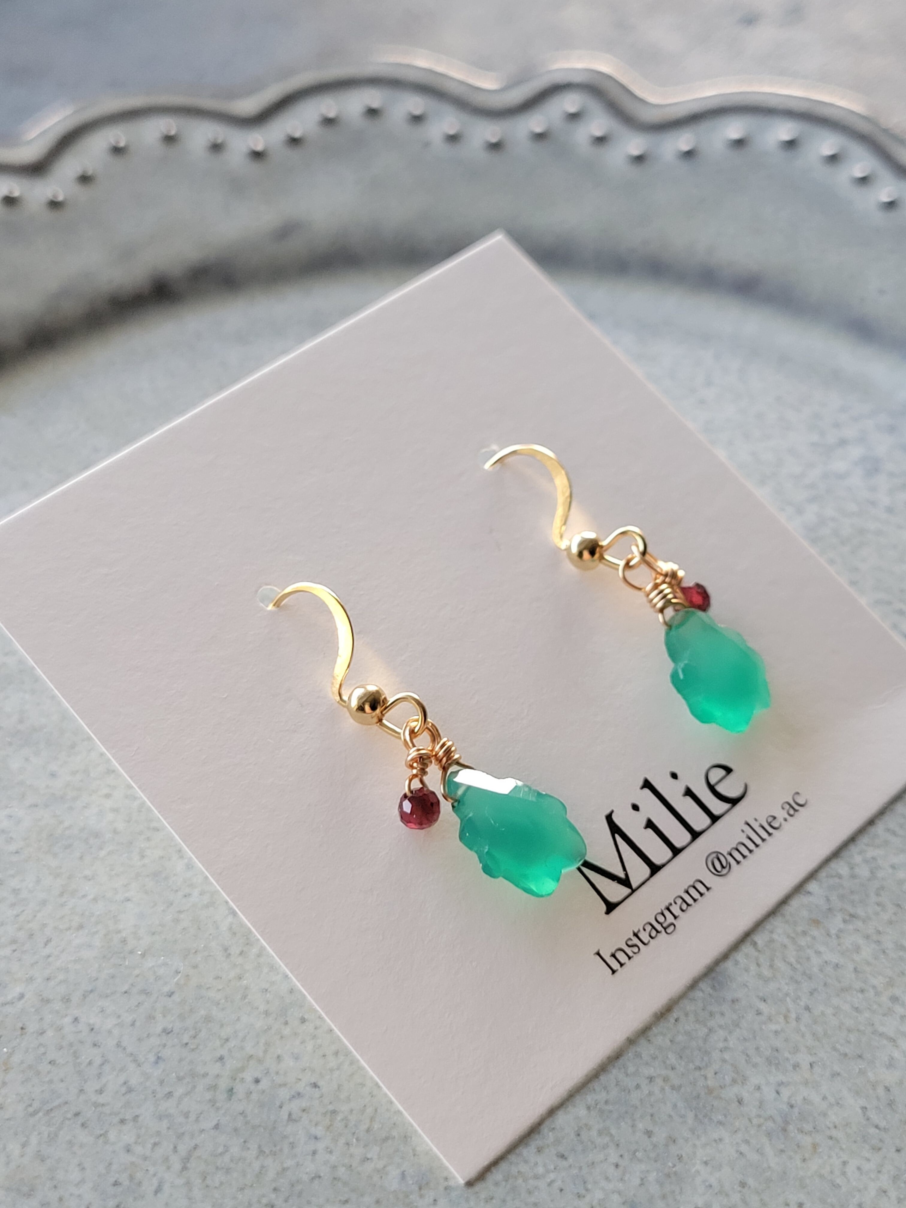 【X'mas限定】天然石 グリーンオニキス&ガーネット