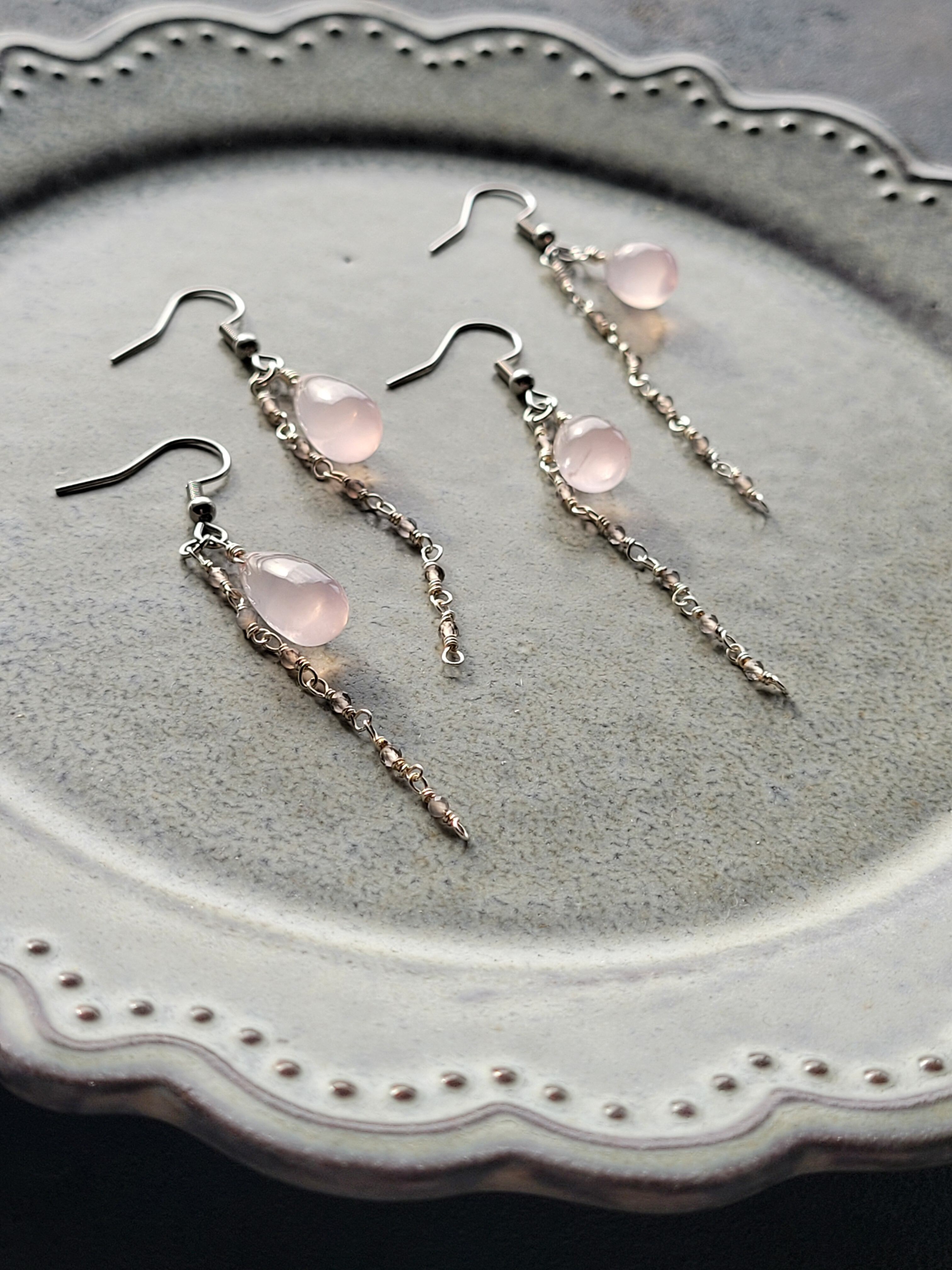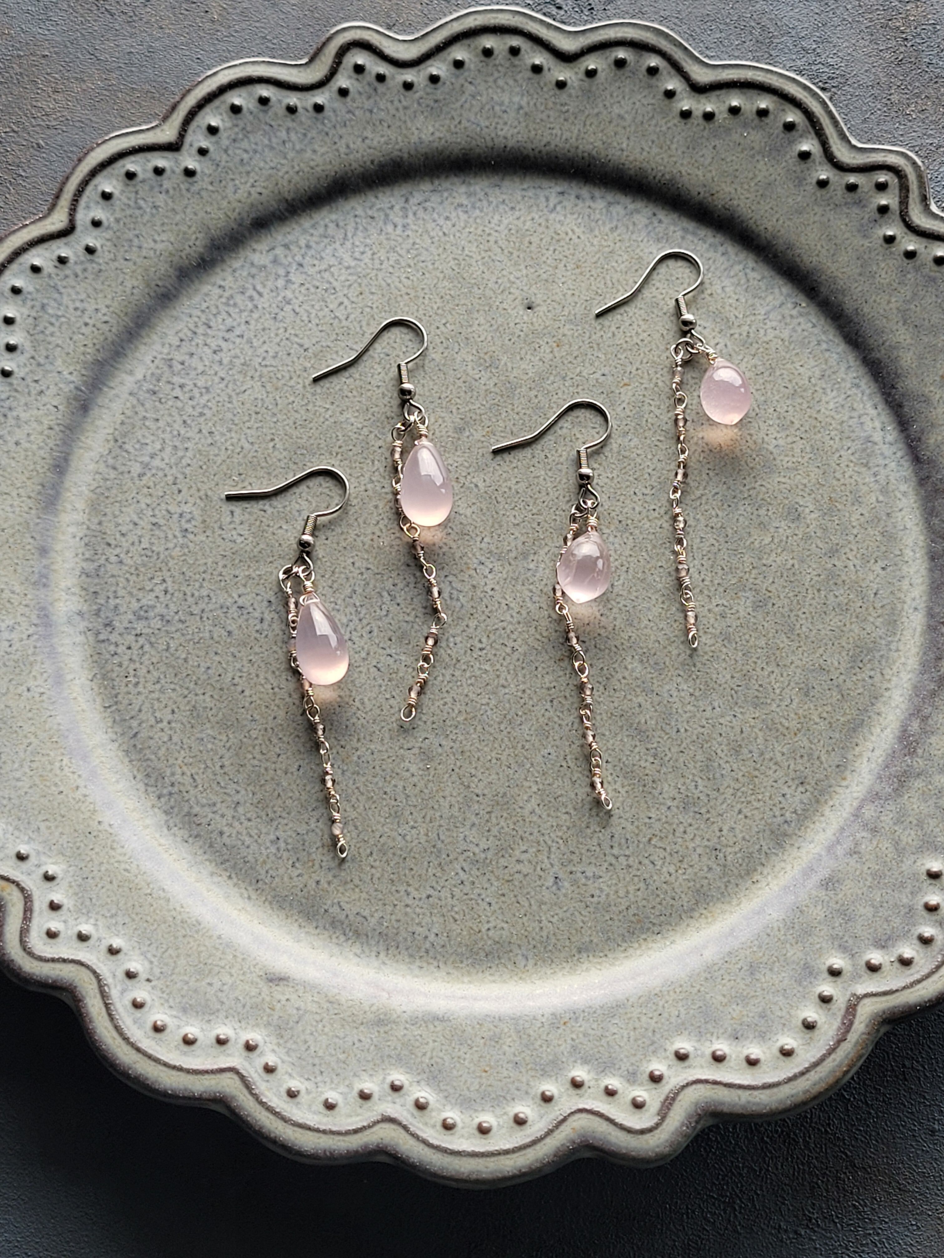 透明感のあるぷっくりとしたローズクオーツと、神秘的なグレームーン