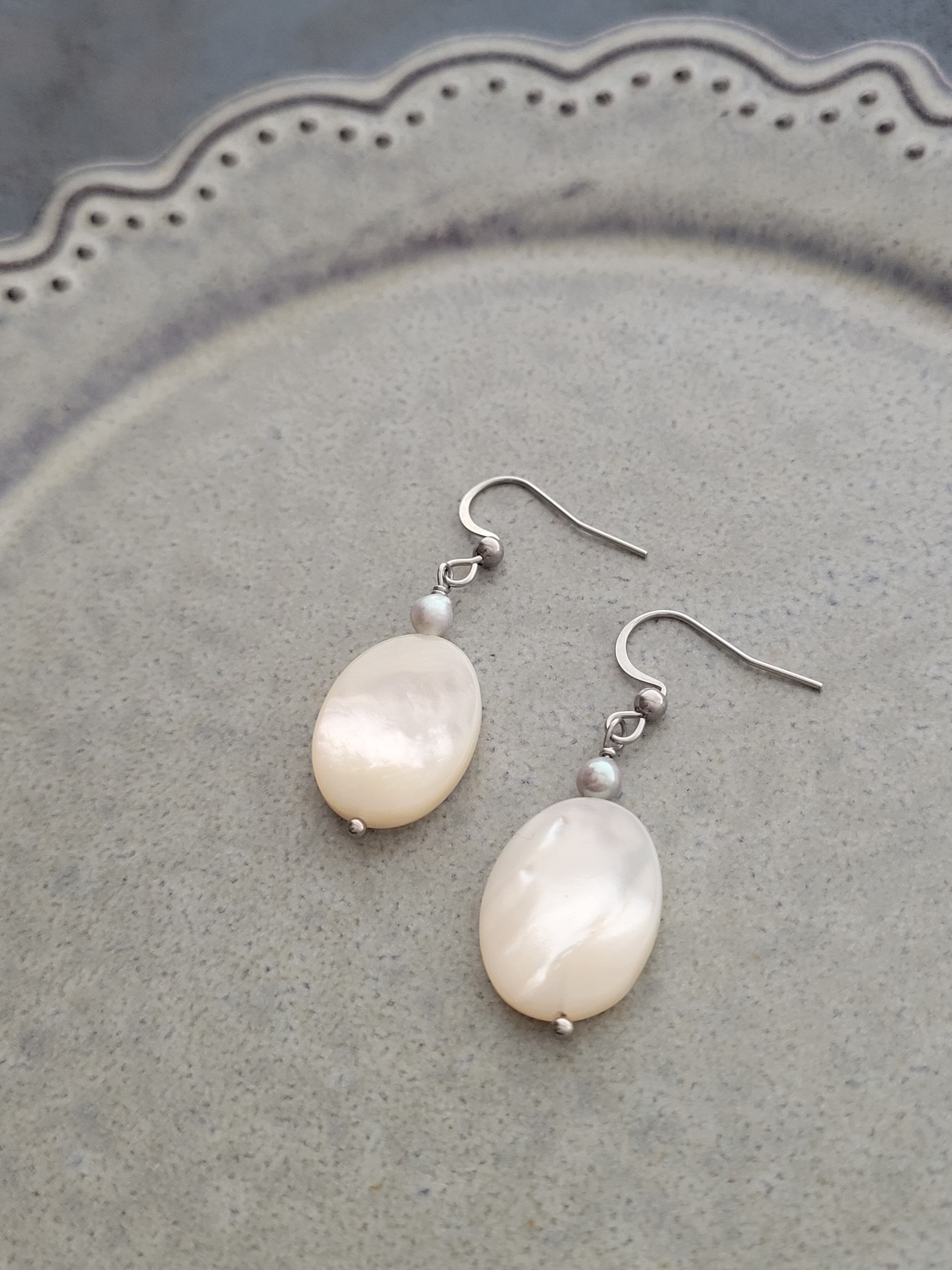 神秘的な美しさを放つホワイトシェルと、優雅なグレーの淡水パール