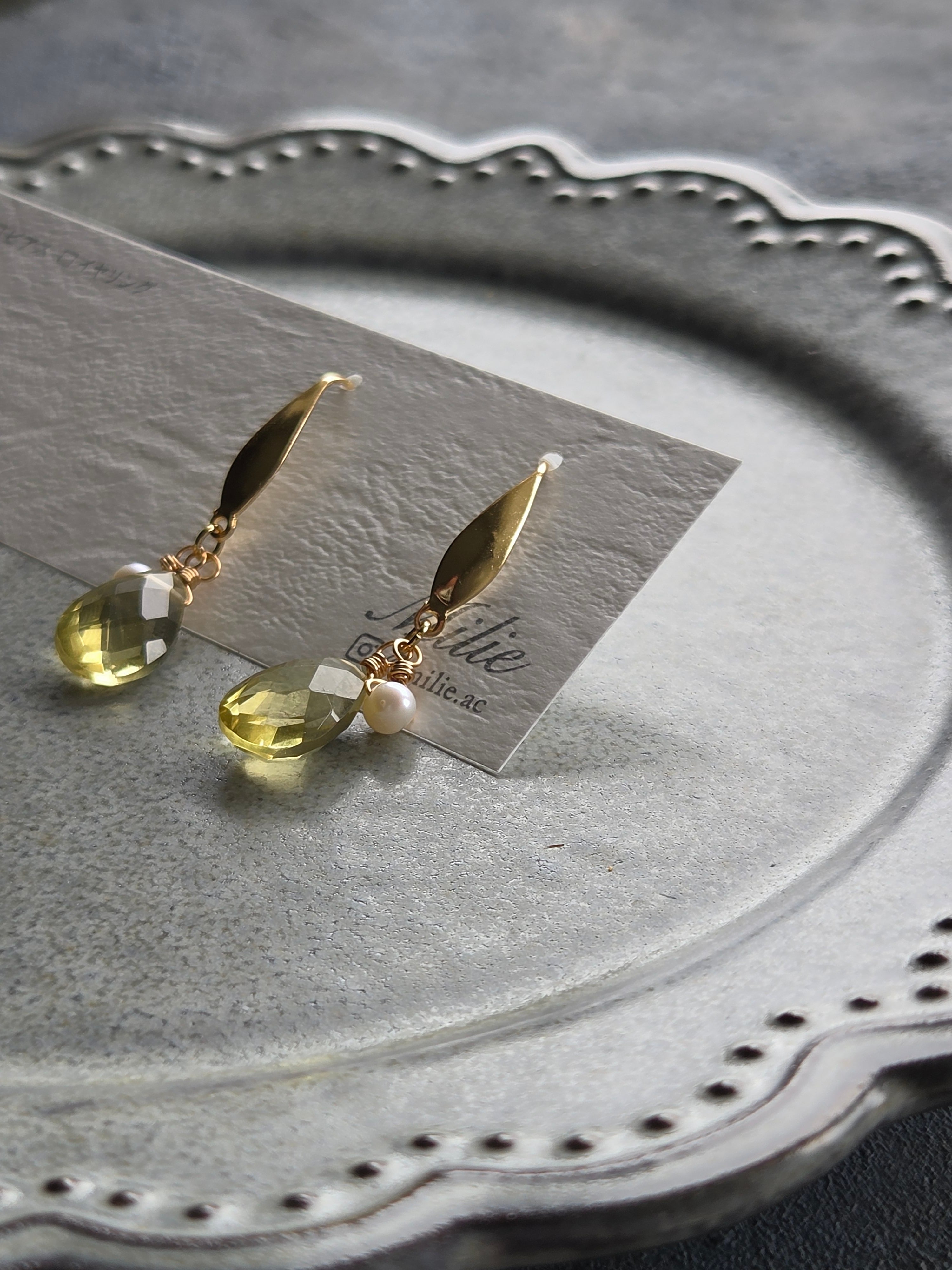 宝石質のビアクオーツと淡水パールで